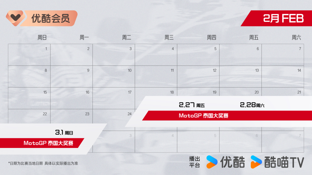 2026年,赛车盛宴轰鸣启幕! 优酷体育携三大赛事重磅来袭:3月20日,MotoGP巴西大奖赛;3月21日,FE电动方程式马德里站;3月28日,GT世界挑战赛澳洲杯第一轮。